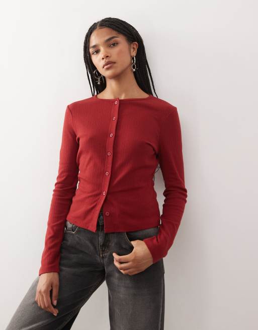 COLLUSION – Röd, pointellestickad kofta med långa ärmar