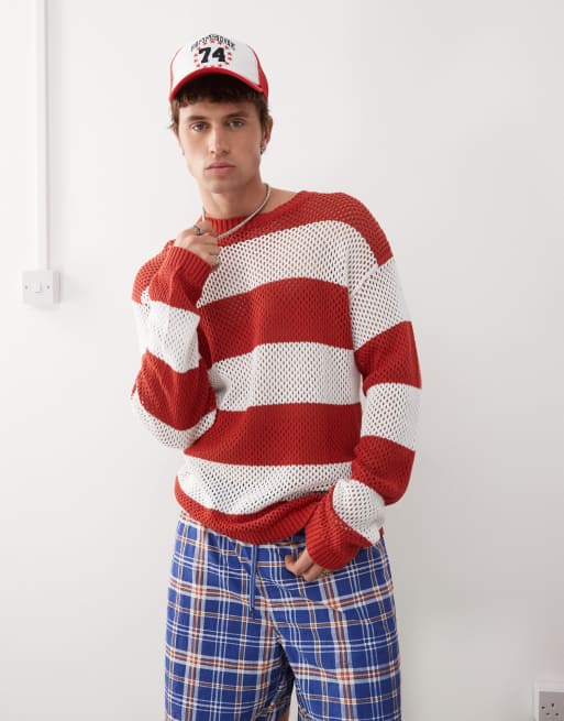 COLLUSION – Rödrandig, virkad tröja