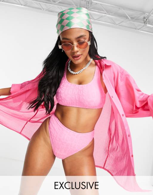 COLLUSION – Rosa, mönstrad bikiniöverdel i frotté