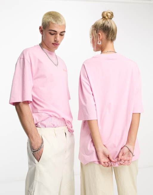 COLLUSION – Rosa t-shirt i unisex-modell med spegellogga