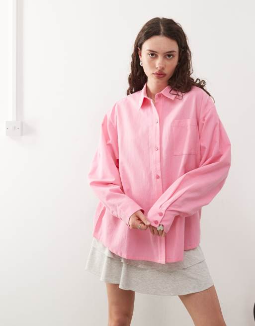 COLLUSION – Rosa, vävd skjorta i oversize av linnemix