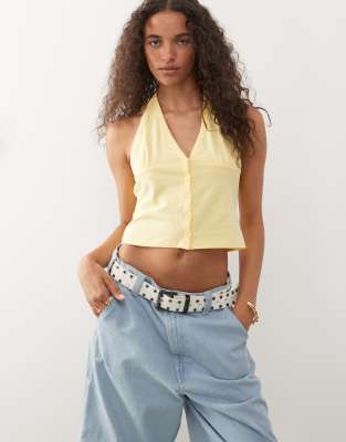 COLLUSION – Smörgul topp med halterneck och knappar framtill