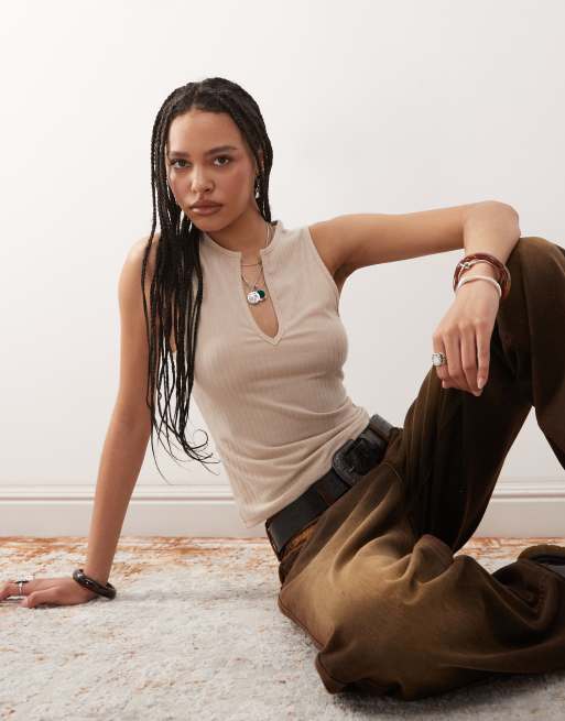 COLLUSION – Stenfärgat, ribbat linne med sprund vid halsen