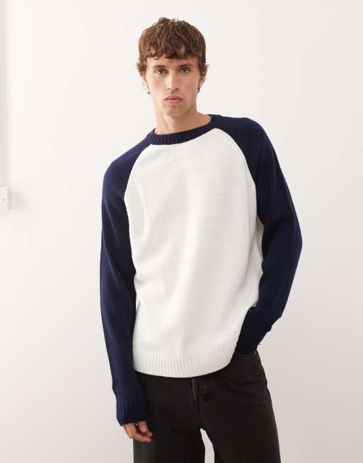 COLLUSION – Stickad tröja med marinblå raglanärmar