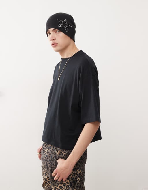 COLLUSION – Svart, avslappnad t-shirt med boxig passform
