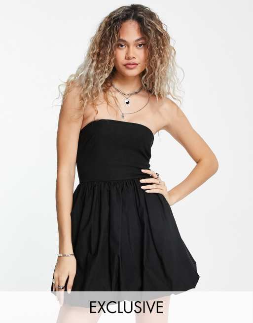 COLLUSION – Svart axelbandslös miniklänning med puffad kjol