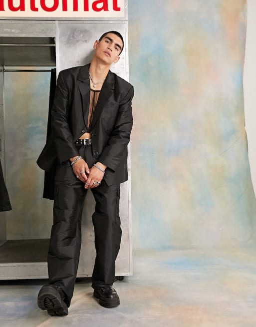COLLUSION – Svart kostym i taft med kavaj och byxor