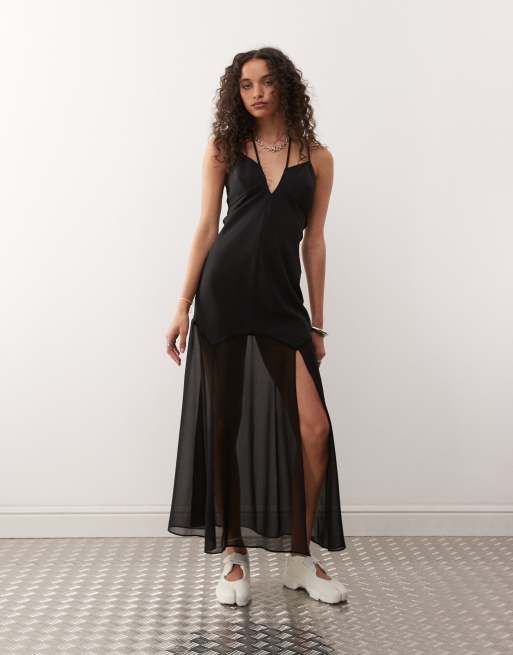 COLLUSION – Svart maxiklänning med skira och täckande tyger