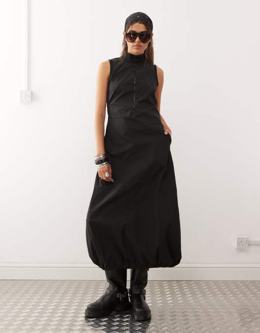 COLLUSION – Svart midiklänning i techstil med hög krage