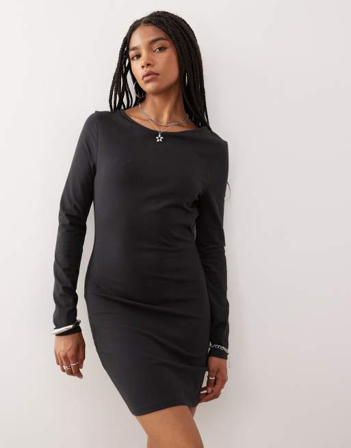 COLLUSION – Svart miniklänning i 90-talsstil med långa ärmar