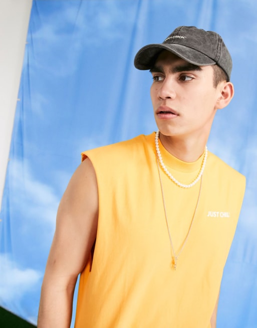 COLLUSION – Svart set med tryck med linne i oversize och jersey-shorts