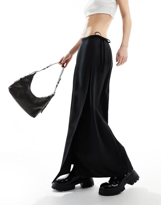 COLLUSION – Svart slipkjol i satin med omlottdesign och knytmidja