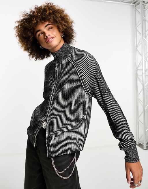 COLLUSION – Svart, stickad tröja med dubbelsidig dragkedja