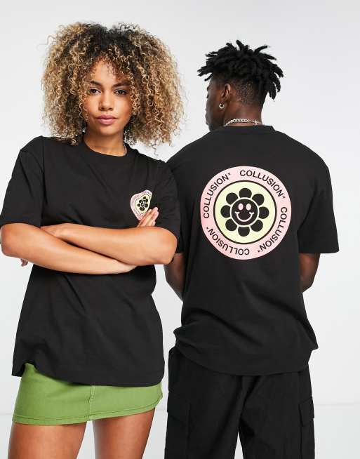COLLUSION – Svart t-shirt i unisex-modell med tryck
