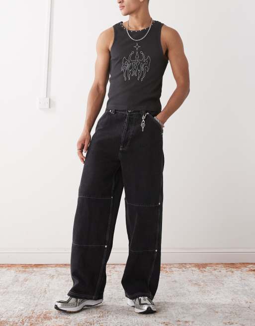 COLLUSION – Svarta snickarbyxor med kontrastsömmar