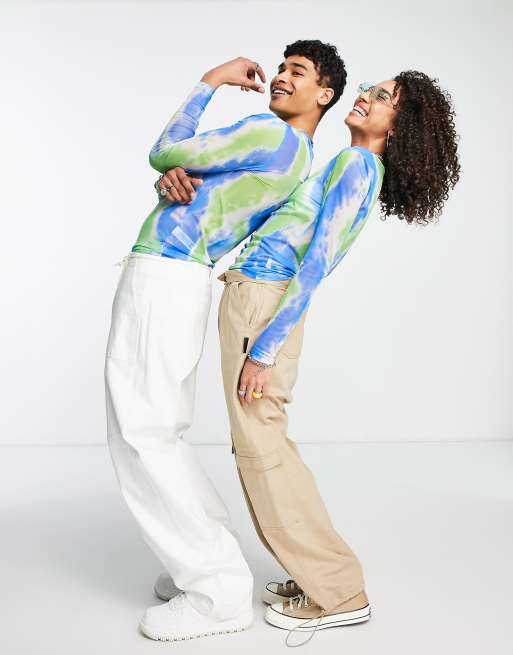 COLLUSION Unisex – Batikfärgad t-shirt i muscle fit med långa ärmar av mesh