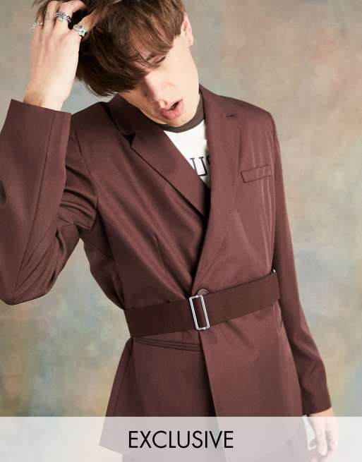 COLLUSION Unisex – Brun, asymmetrisk kavaj med skärp, del av kostym