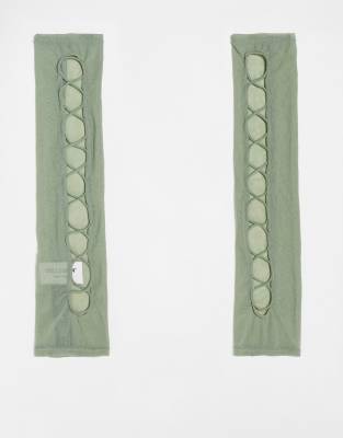 COLLUSION Unisex – Grå handskar utan fingrar med långa ärmar av mesh