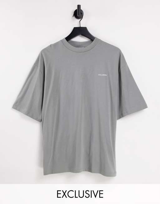 COLLUSION Unisex – Grå t-shirt av bomull i oversize med logga - MGREEN