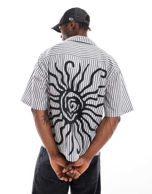 COLLUSION – Unisex – Grårandig skjorta med boxig passform och emblem baktill