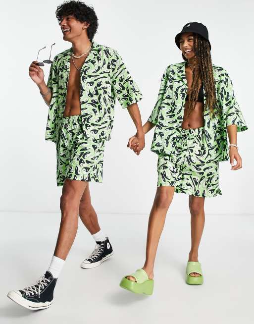 COLLUSION Unisex – Gröna strandshorts med yin-yangmönster, del av set