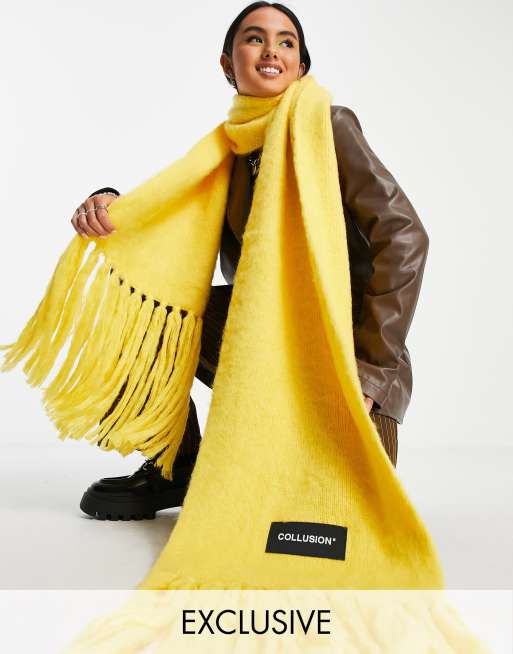 COLLUSION Unisex – Gul fluffigt stickad halsduk