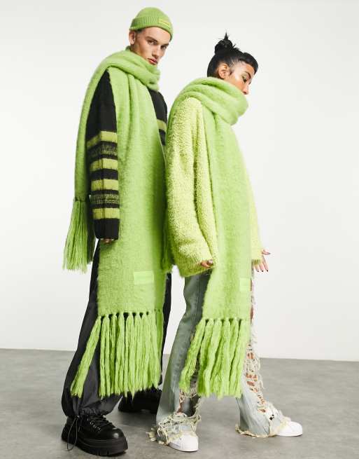 COLLUSION Unisex – Gulgrön fluffigt stickad halsduk med logga