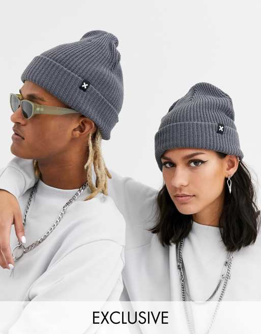 COLLUSION Unisex – Mörkgrå mössa med logga