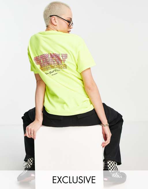 COLLUSION Unisex – Neongul t-shirt i oversize med programmeringstryck