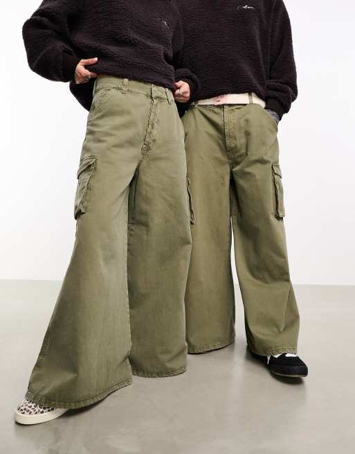COLLUSION Unisex – Premium – Kakigröna, tvättade cargobyxor