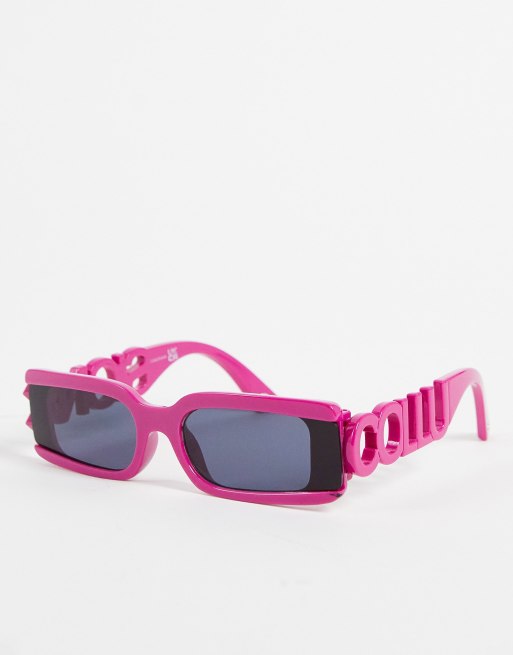 COLLUSION Unisex – Rosa rektangulära solglasögon med logga och utskurna detaljer