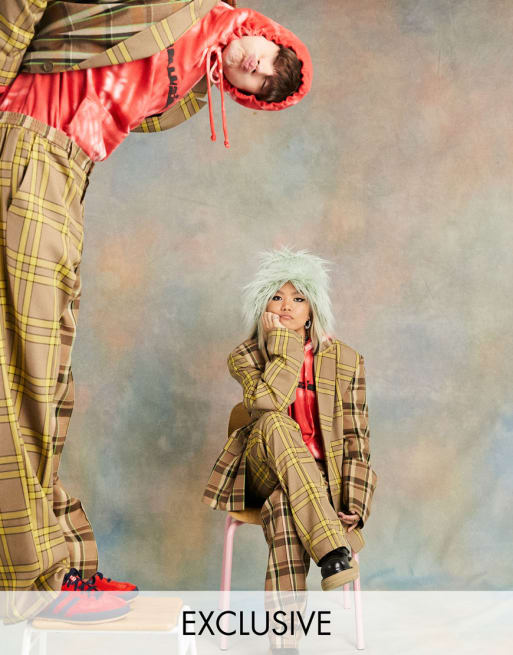 COLLUSION Unisex – Rutigt set med tvådelad kavaj och byxor