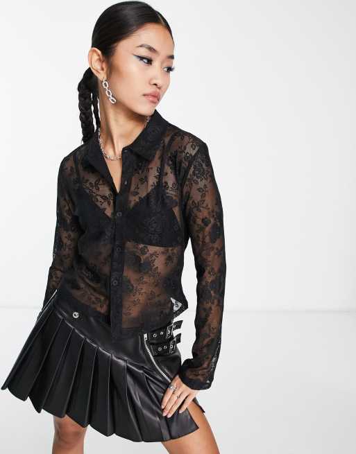 COLLUSION – Unisex – Svart, långärmad skjorta med spets