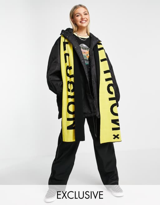 COLLUSION Unisex – Svart och gul halsduk med logga