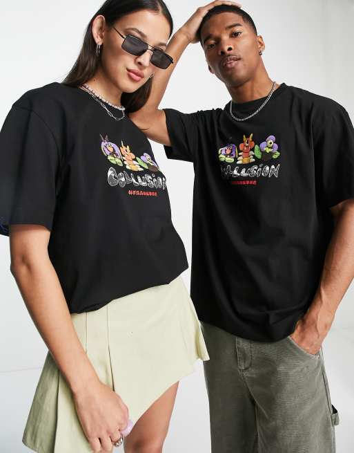 COLLUSION Unisex – Svart t-shirt med monstertryck