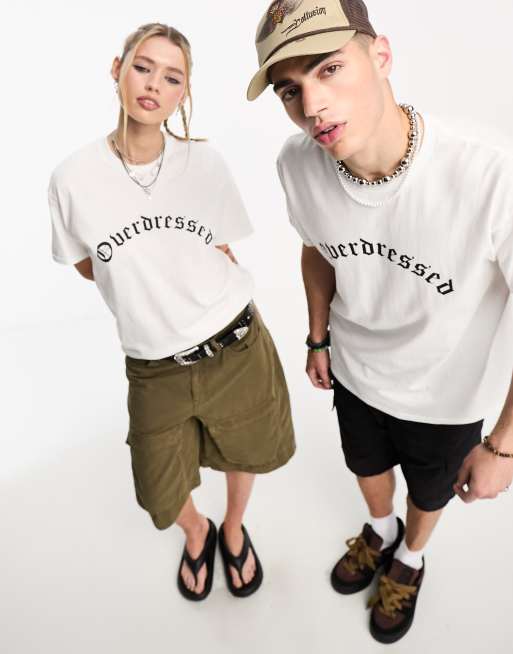 COLLUSION – Unisex – Vit t-shirt med "Overdressed"-tryck