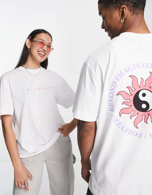 COLLUSION – Unisex – Vit t-shirt med tryck