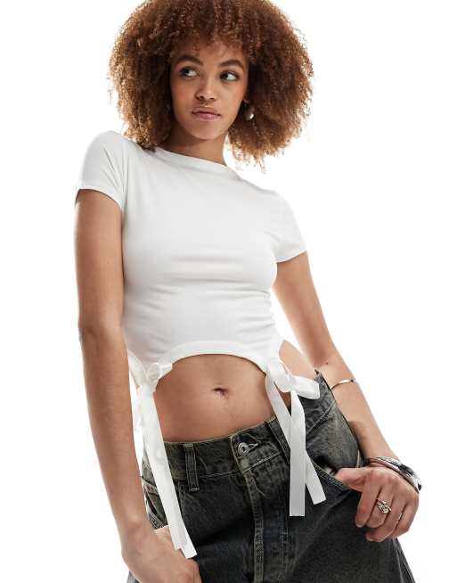 COLLUSION – Vit, figursydd t-shirt med korta ärmar och kantband
