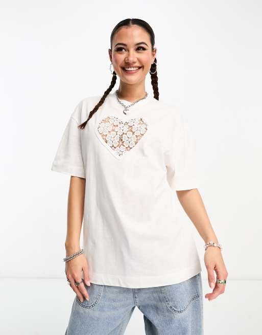 COLLUSION – Vit t-shirt i oversize med broderie anglaise och utskurna detaljer