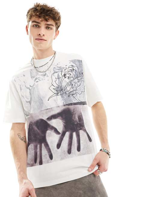 COLLUSION – Vit t-shirt med handtryck framtill