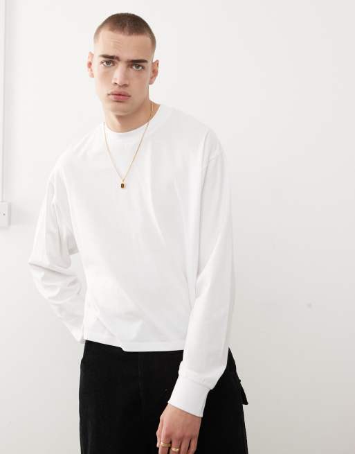 COLLUSION – Vit t-shirt med långa ärmar och boxig passform