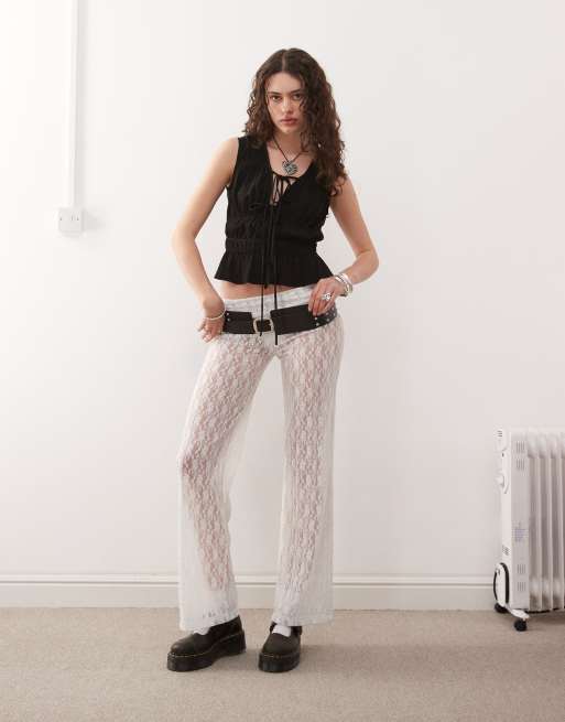 COLLUSION – Vita yogabyxor i spets med nedvikt kant