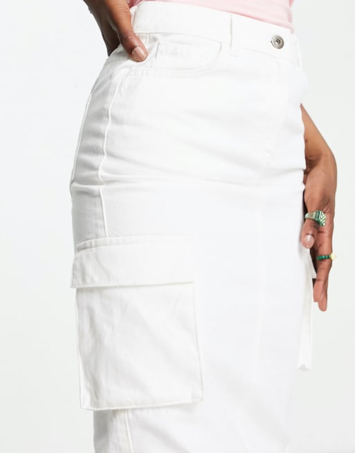 COLLUSION – Vitt jeansset med korsett och cargokjol