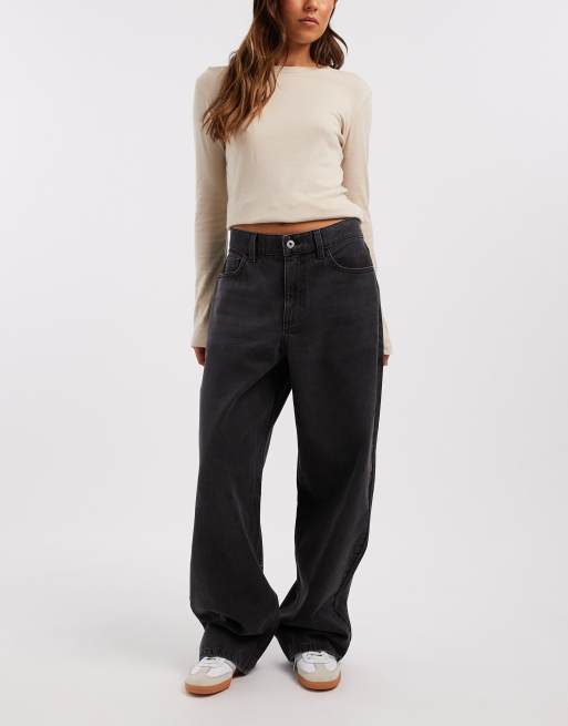 COLLUSION – X001 – Bleksvarta jeans med medelhög midja i antifit