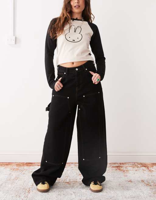 COLLUSION – x002 – Svarta, tvättade, baggy snickarjeans