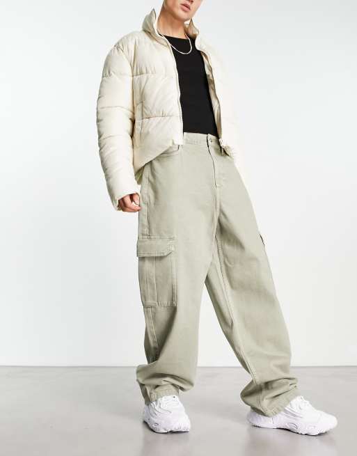 COLLUSION x015 Anti Fit – Khakifärgade cargojeans med tvättad finish