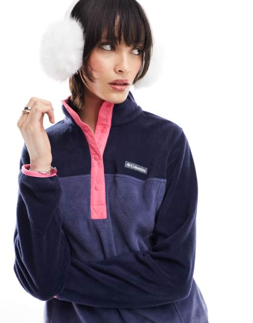 Columbia – Benton Springs – Marinblå fleecetröja med tryckknappar i halsen
