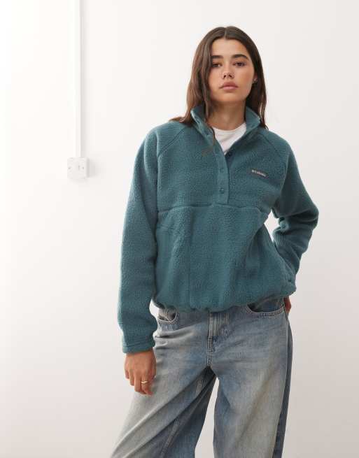 Columbia – Jasper Ridge – Blå tröja i texturerad fleece med tryckknappar