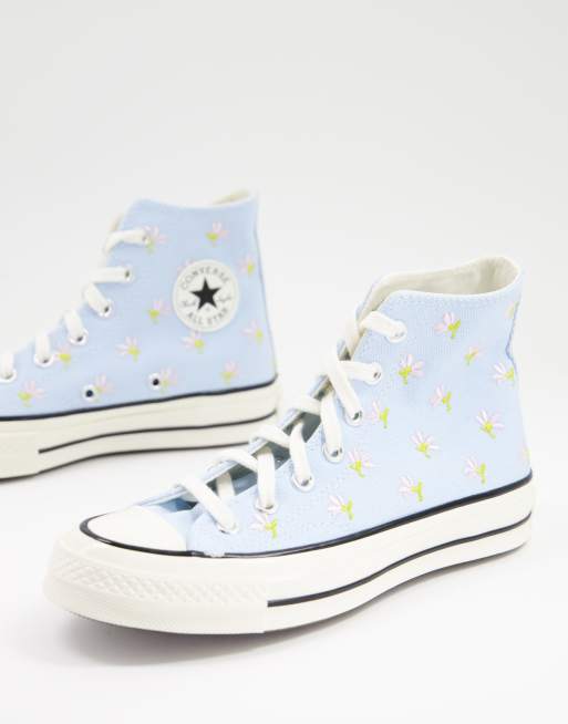 Converse – Chuck 70 – Blå blombroderade sneakers med höga skaft