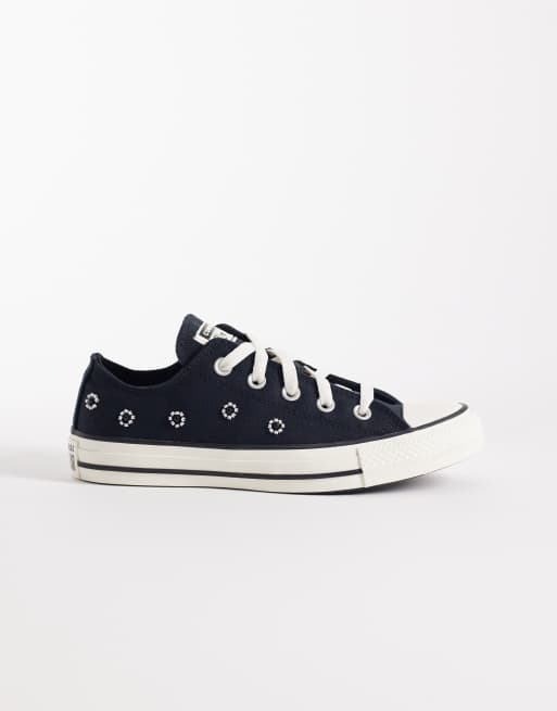 Converse – Chuck Taylor All Star Ox – Svarta sneakers med pärldetaljer